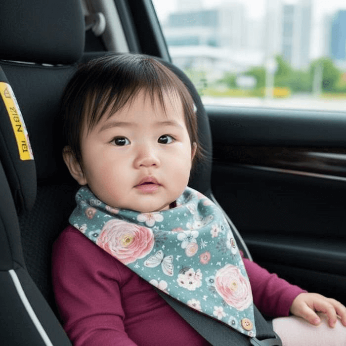 Indossa il bavaglino al collo del bambino durante i pasti o quando sbava. Lava regolarmente in lavatrice a 30–40 °C con detergente delicato. Assicurarti che il bavaglino sia ben chiuso ma non troppo stretto per garantire libertà di movimento.