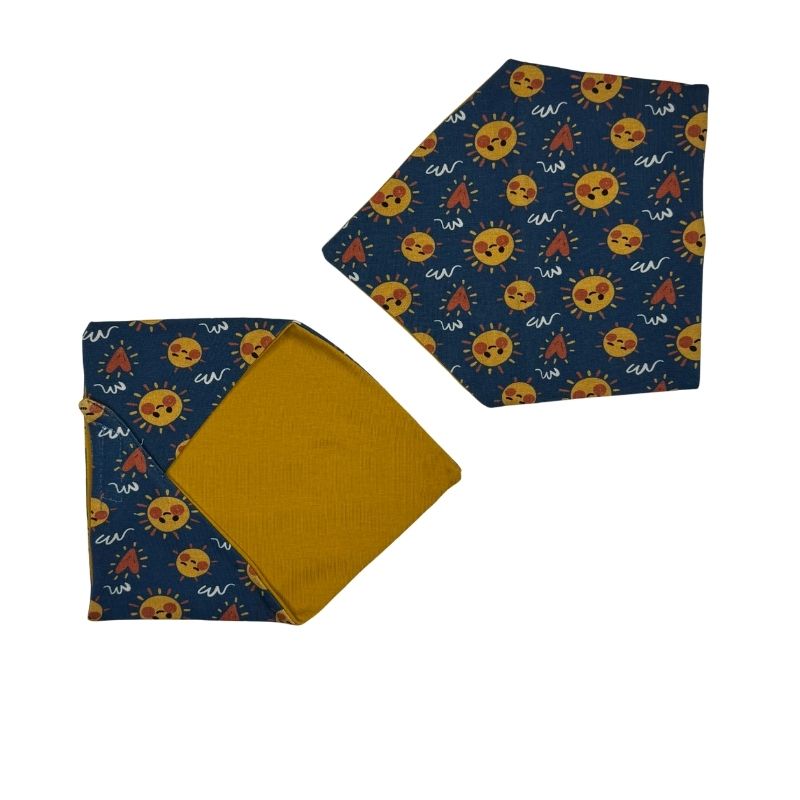 accessorio. E’ reversibile e si chiude con il velcro per adattarsi facilmente alla crescita del vostro bimbo. Essendo capi artigianali, possono presentare lievi variazioni di colore, sfumatura o posizionamento del pattern, dovute ai diversi tagli del tessuto; queste caratteristiche rendono ogni pezzo unico.
