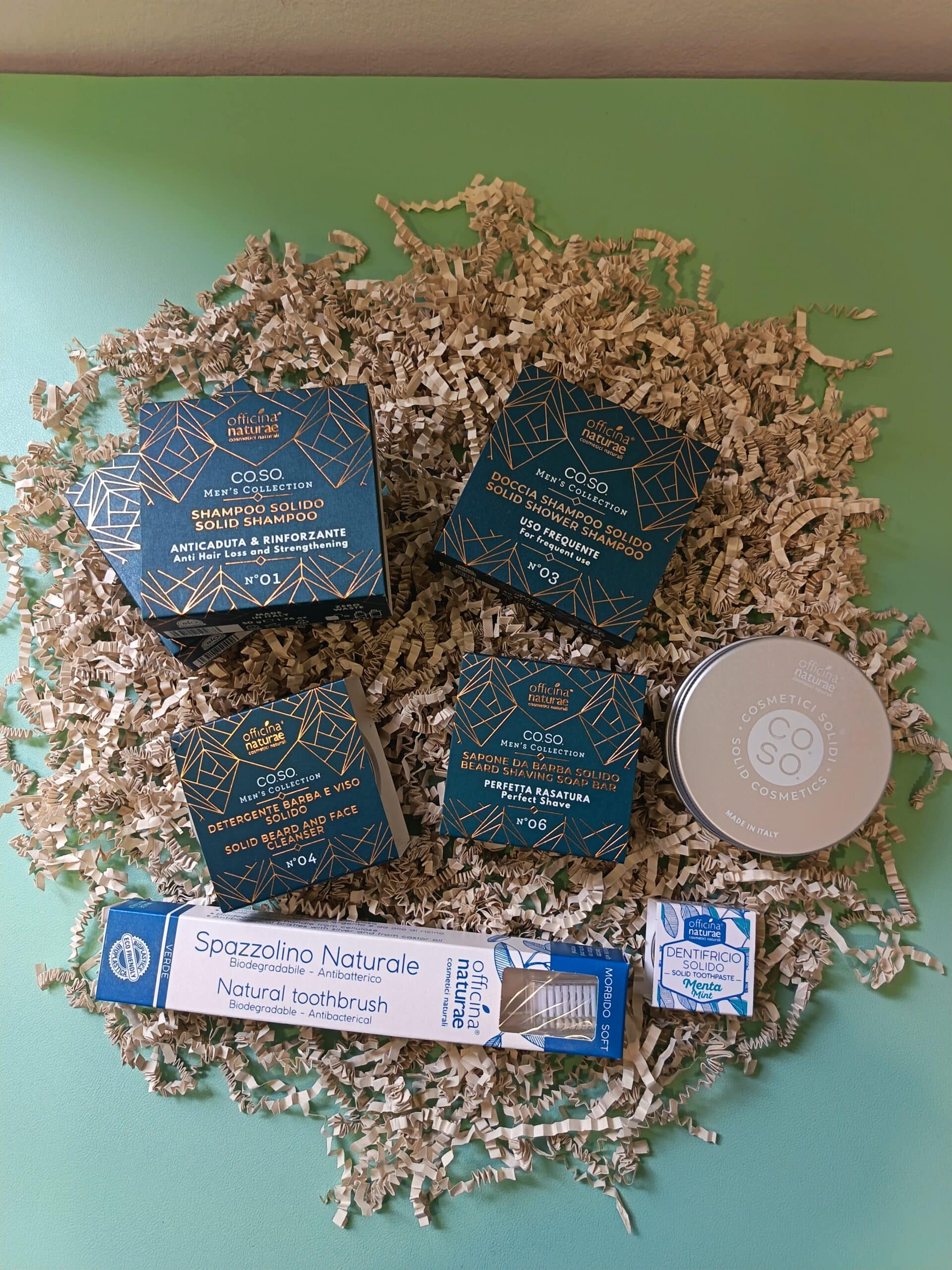 La box definitiva per il papà che non si ferma mai. Che sia per un viaggio zaino in spalla, una trasferta di lavoro o la borsa della palestra, “Anima Nomade” offre una soluzione completa e ultra-pratica. Grazie ai contenitori in alluminio e ai formati solidi, ogni prodotto è pronto a seguirti senza il rischio di perdite nei bagagli, garantendo una cura totale dalla barba ai denti, dai capelli al corpo.