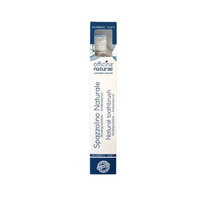 È uno spazzolino con setole morbide: le setole esterne, in bioplastica da olio di Ricino, non intaccano lo smalto e non irritano le gengive.