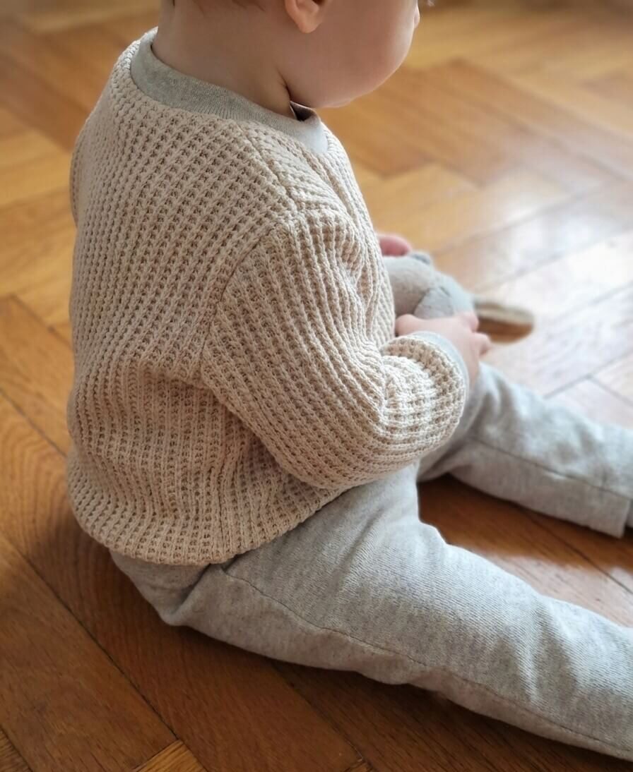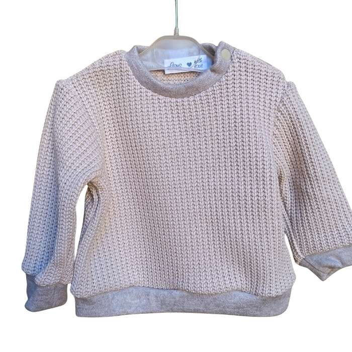 *Maglioncino intrecciato in cotone, morbido e accogliente *Tuta unisex dai colori tenui, elegante e facile da abbinare *Vestibilità ampia che accompagna la crescita